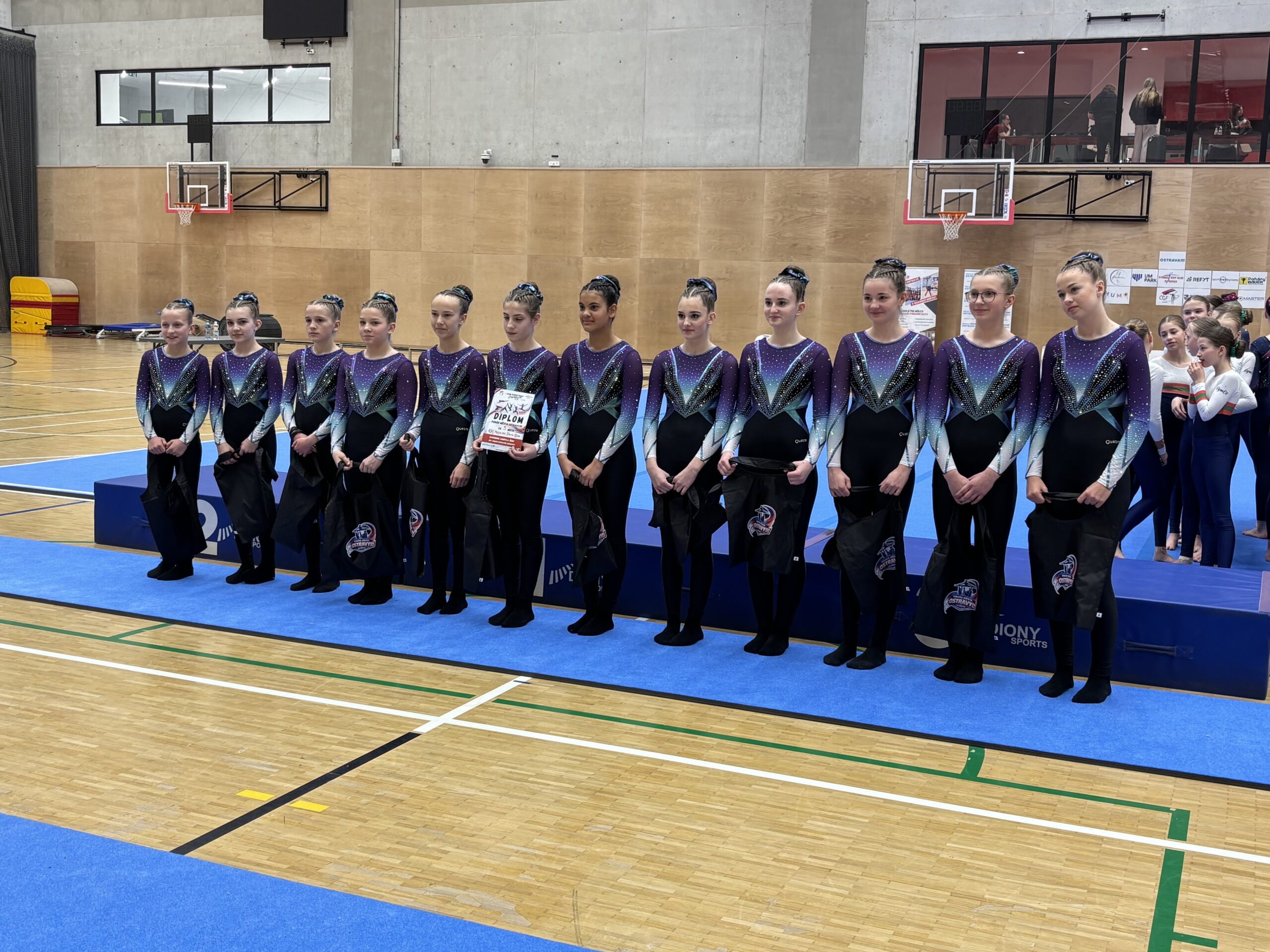 Děvčata v nejvyšší kategorii (jak obtížnostně, tak věkově) za sebou nechala na druhém místě družstvo z GARFI Ostrava a na třetím místě domácí FLIK-FLAK Plzeň. Závod byl velice vyrovnaný, rozhodovaly jak drobné chyby na trampolíně a akrobacii, tak provedení pohybové skladby, za kterou si tým vysloužil nejvyšší známku celého závodu 17.350 bodů.